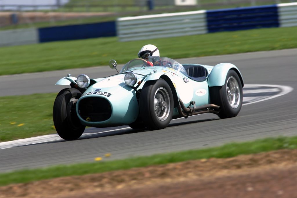 Hillclimb specialist Scragg preferred his cars to have cycle wing mudguards for use on the narrow British hills. He had many class victories in SPC 982 and won the sportscar hillclimb championship with it in 1959. Later he continued his success in a similarly bodied Lister Jaguar (also successfully fielding a lightweight E type in 1963/4) and towards the end of his full time career a Lola T70. Tragically Scragg died whilst racing at Silverstone in 1972 and even more tragically his son was killed in a road accident returning to the funeral of his father.